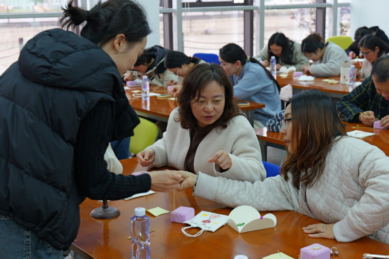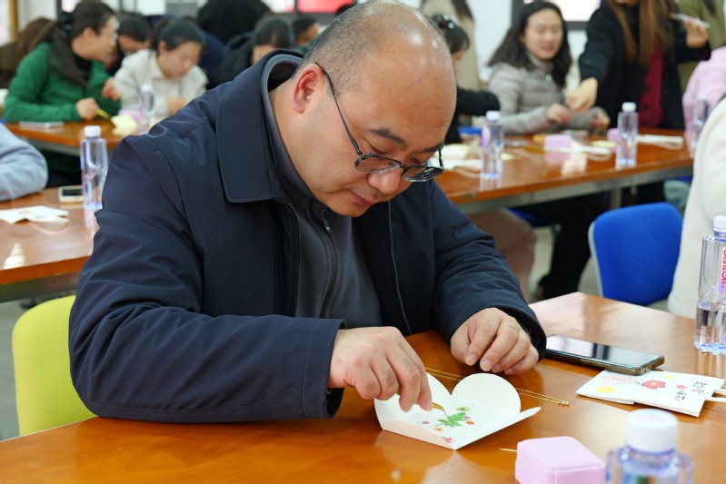 活动伊始,两校辅导员共同参与压花手工体验活动。工作人员详细讲解了压花艺术的起源、创作技巧及文化内涵,阐述了该活动在舒缓工作压力、提升审美素养及传递育人温度方面的积极作用。现场气氛轻松愉悦,大家协作互助、交流创意。此次体验不仅丰富了校际交流的形式,更增进了两校同仁的情谊,让大家在艺术实践中释放压力、凝聚合力。